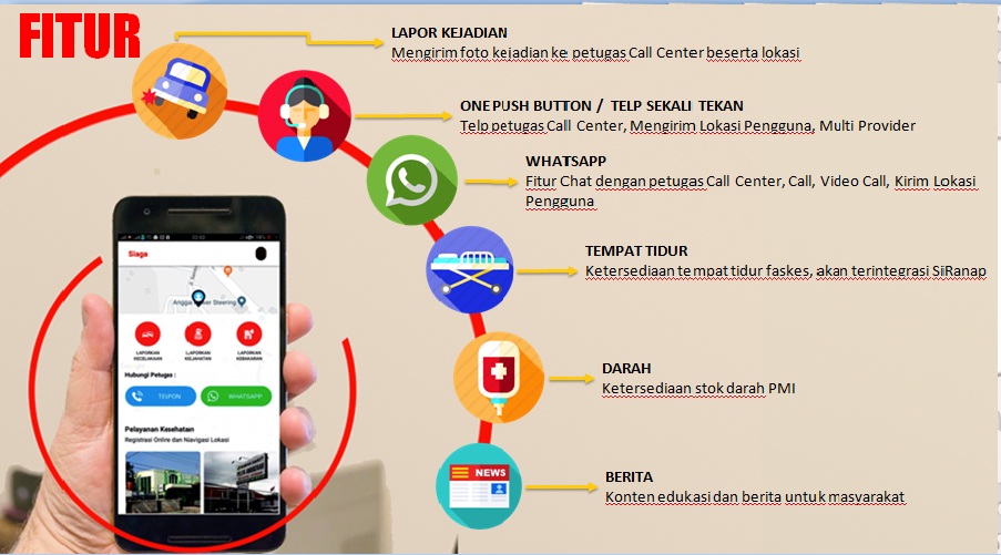 di fitur-fitur ini teman-teman bisa regristasi online ke fasilitas kesehatan, melihat ketersediaan Bed di rumah sakit atau puskesmas yang sudah bekerja sama dengan PSC119 Siaga Kendal, melihat persediaan darah di PMI juga,,, dll.