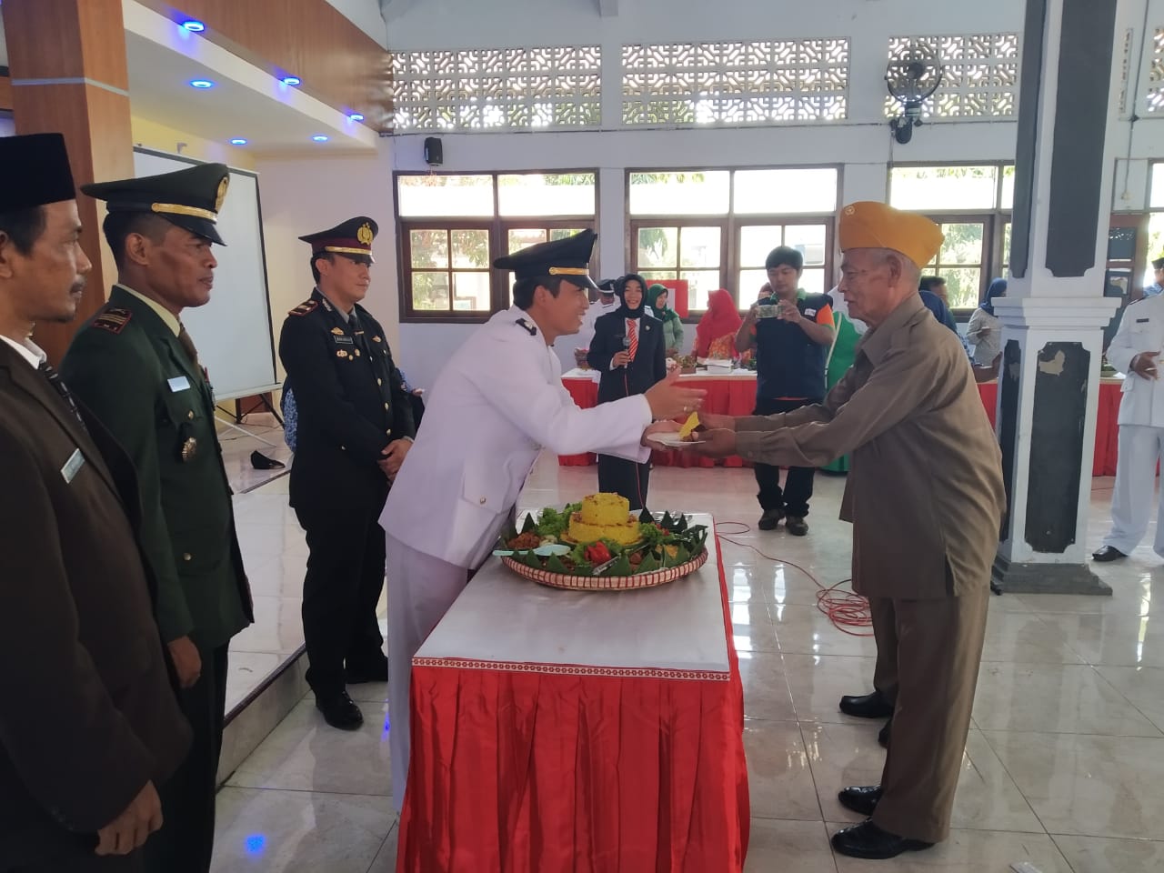 Camat Kaliwungu membuka Tasyakuran dan memberikan potongan pertama tumpeng kepada perwakilan dari Veteran