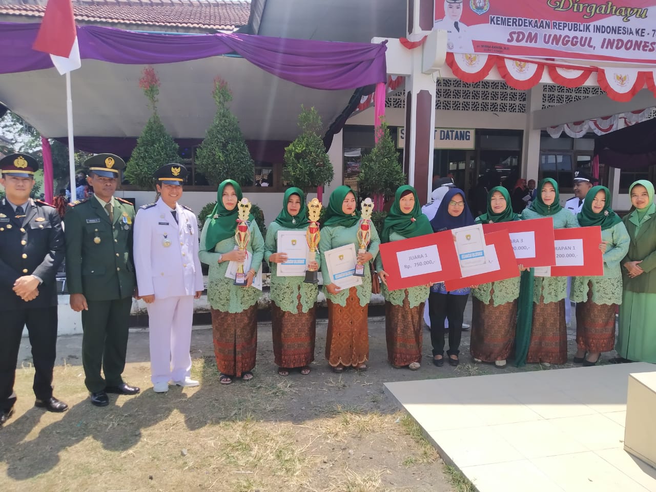 Setelah upacara selesai kegiatan dilanjutkan dengan mengumumkan hasil lomba yang telah diselenggarakan dan membagian hadiah yang selanjutnya diikuti agenda Tasyakuran dan secara simbolis memberikan tali asih kepada para Veteran.