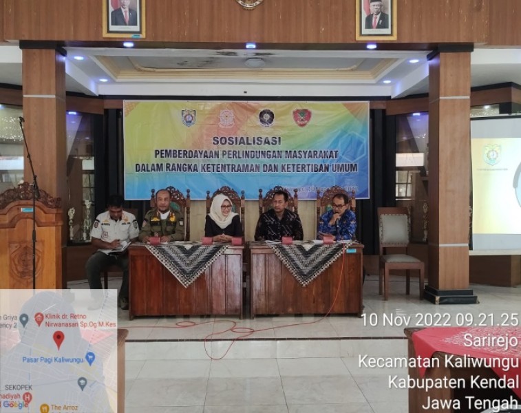 KALIWUNGU - Dalam persiapan menghadapi Pemilukada tahun 2023, Satuan Polisi Pamong Praja Dan Damkar Kab. Kendal mengadakan Sosialisasi Pemberdayaan Perlindungan Masyarakat dalam rangka ketentraman dan ketertiban umum yang diadakan di Pendopo Kecamatan Kaliwungu, Kamis 10 Nopember 2022.