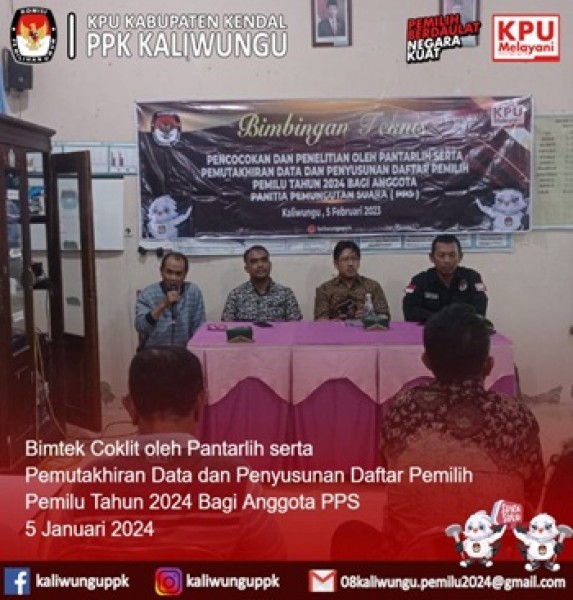 KALIWUNGU – Sebagai tindaklanjut Bintek yang dilaksanakan.di KPU Kendal kepada PPK, maka dialksanakan Bimtek Pencocokan dan Penelitian oleh Pantarlih dan Mutarlih oleh PPS Desa Se Kec. Kaliwungu hari Minggu, 5 Pebruari 2023.