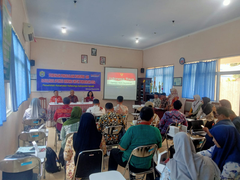 KENDAL – IMPLEMENTASI Sistem Informasi Kearsipan Dinamis Terintegrasi (Srikandi) bakal dioptimalkan di Desa Se Kecamatan Kaliwungu. Perkembangan teknologi begitu pesat, kita mau tidak mau suka tidak suka harus mengikuti perkembangan arus teknologi dan inovasi. Kalau kita tidak mengikuti, kita akan tergilas oleh arus perubahan dan teknologi. Salah satu upaya untuk mengubah tata kelola persuratan dan kearsipan lebih efektif dan efisien, adalah dengan mengimplementasikan Aplikasi Srikandi bagi semua Badan Layanan Publik, termasuk Pemerintah Desa. Aplikasi Srikandi yang telah diberlakukan secara nasional, akan mempermudah koordinasi dan tracking surat menyurat sehingga mengangkat mutu layanan public. Hal itu disampaikan oleh Camat Kaliwungu , Drs. NUNG TUBENO dalam sambutan pembukaan Bimtek Implementasi Aplikasi Srikandi Bagi Pemerintah Desa Se Kecamatan Kaliwungu, pada hari Selasa, 7 Nopember 2023 di Ruang Rapat Kecamatan Kaliwungu.